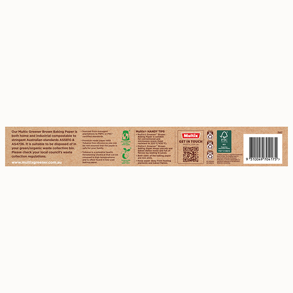 - Multix Greener Brown Baking Paper is suitable for conventional and microwave ovens (heat resistant to 220°C/ 430°F).