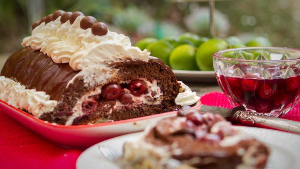 Dark chocolate and cherry roulade