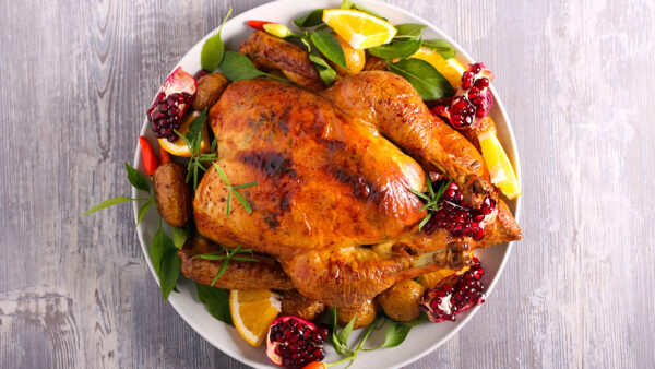 Citrus & Miso Glazed Roast Turkey with Pomegranate Freekeh Salad